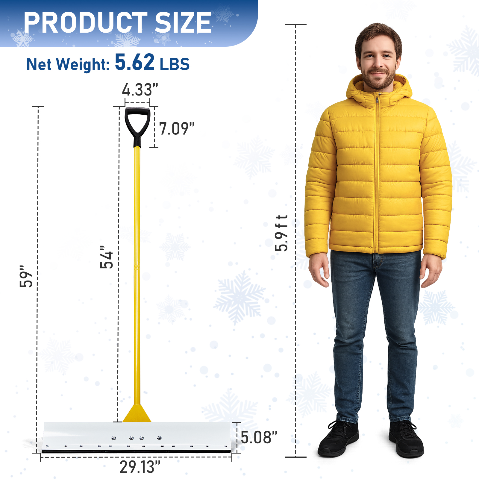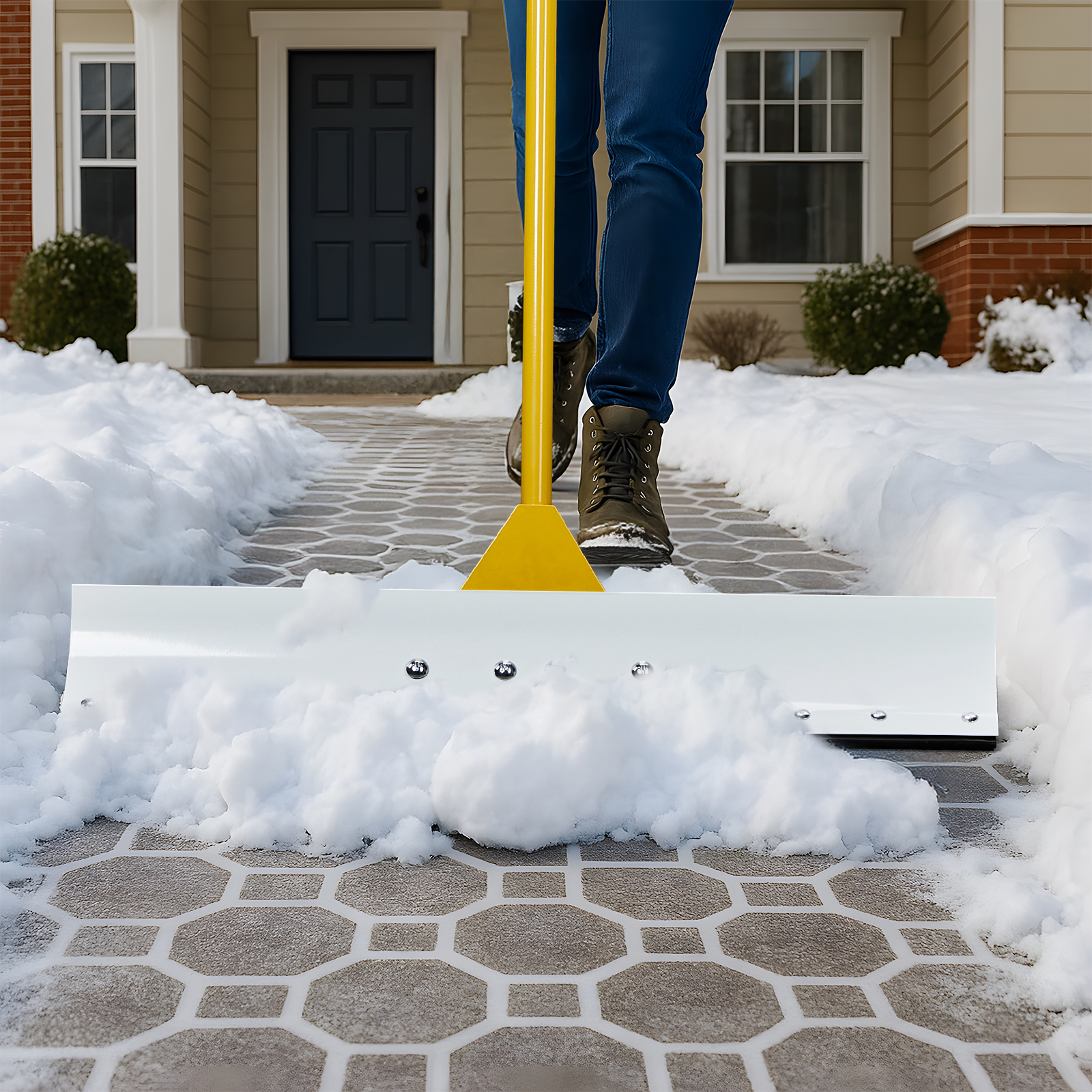29in Wide Snow Pusher Shovel Plow Blade For Driveways, Sidewalks, Doorways & Decks, Hockey Rinks, Residential & Commercial Applications, Yellow &